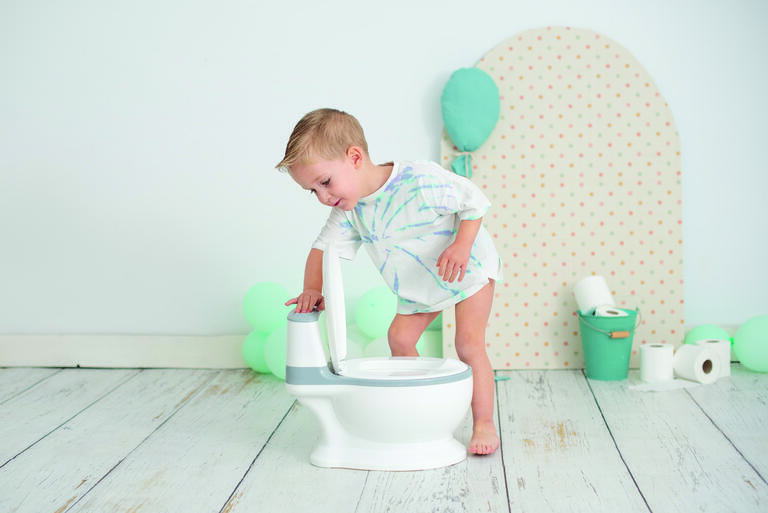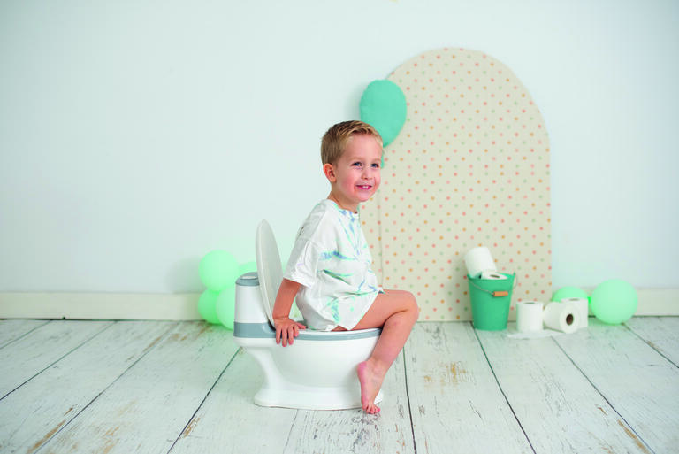 -Similar al WC de un adulto, con tapa y una divertida cisterna.